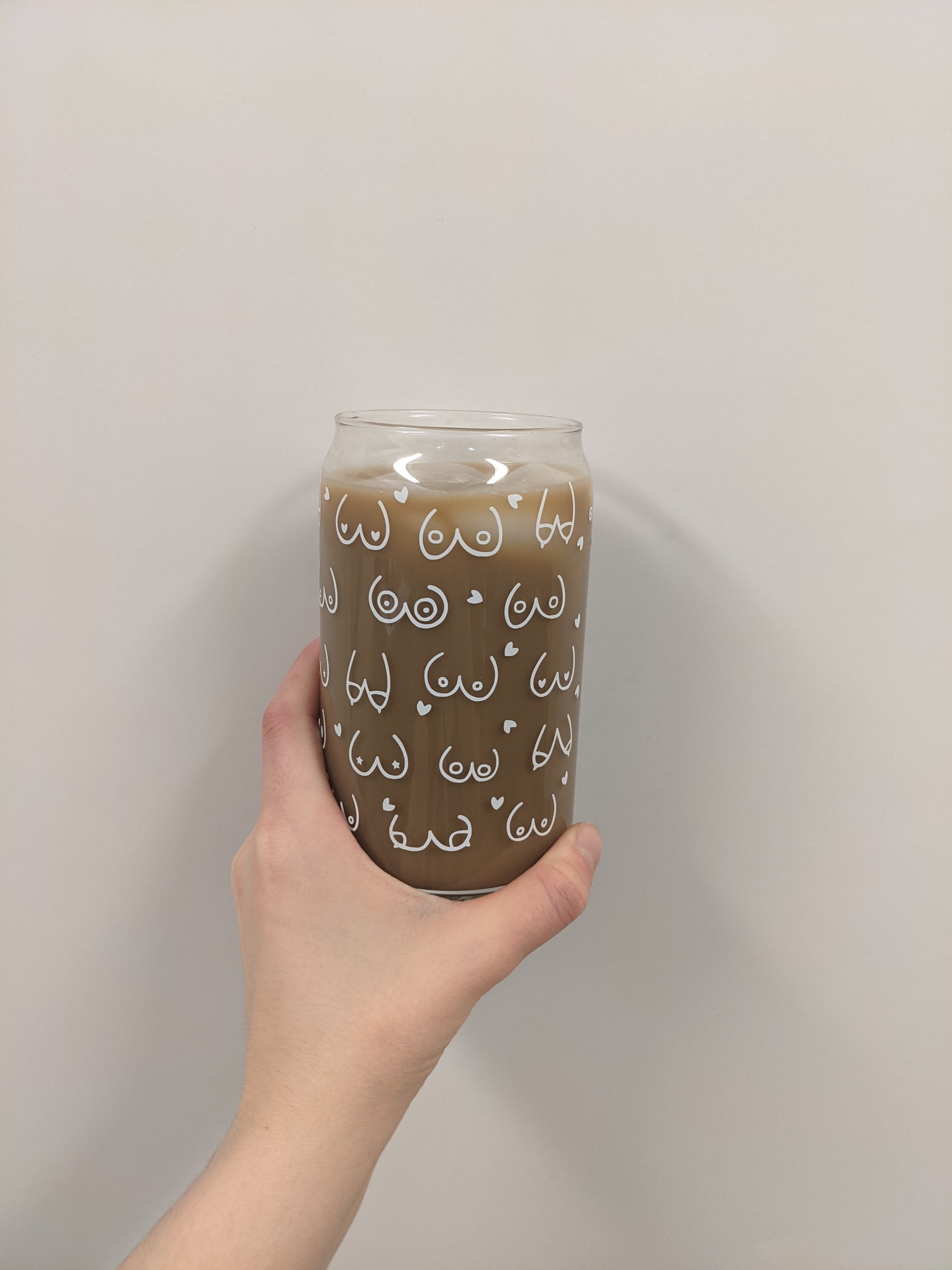 This hilarious but sexy cups features boobs of all kinds! This is a full wrap design, so the design wraps around the entire cup.