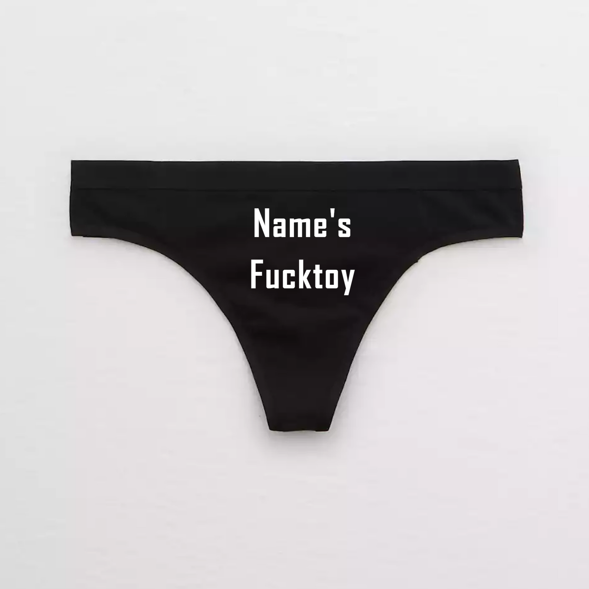 This naughty thong is personalized with the name of your choice! Your partner will love to see you in these custom panties telling them exactly who you belong to. Choose from 9 colors for the personalized text and available in sizes S-2XL.