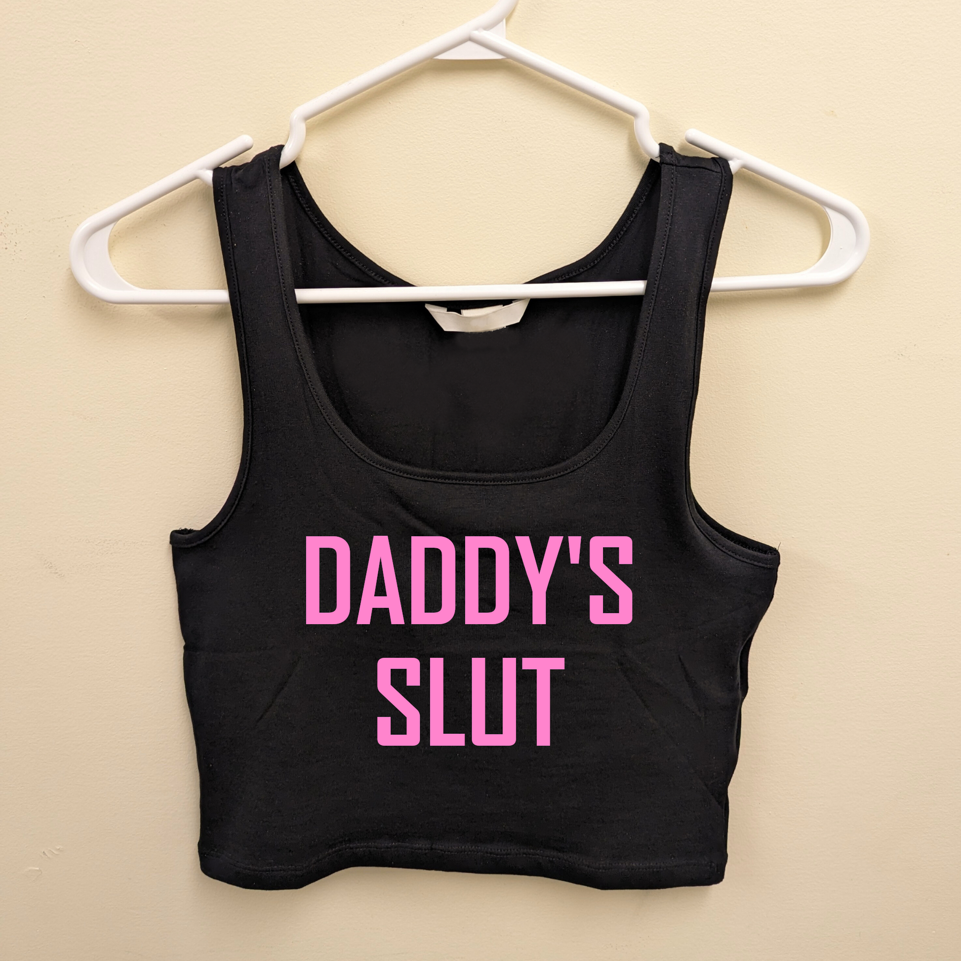 This kinky crop top is made for all the little sluts who have a ddlg kink! It says "Daddy's Slut" in your choice of 9 different text colors. Your Daddy dominant will love this slutty crop top!