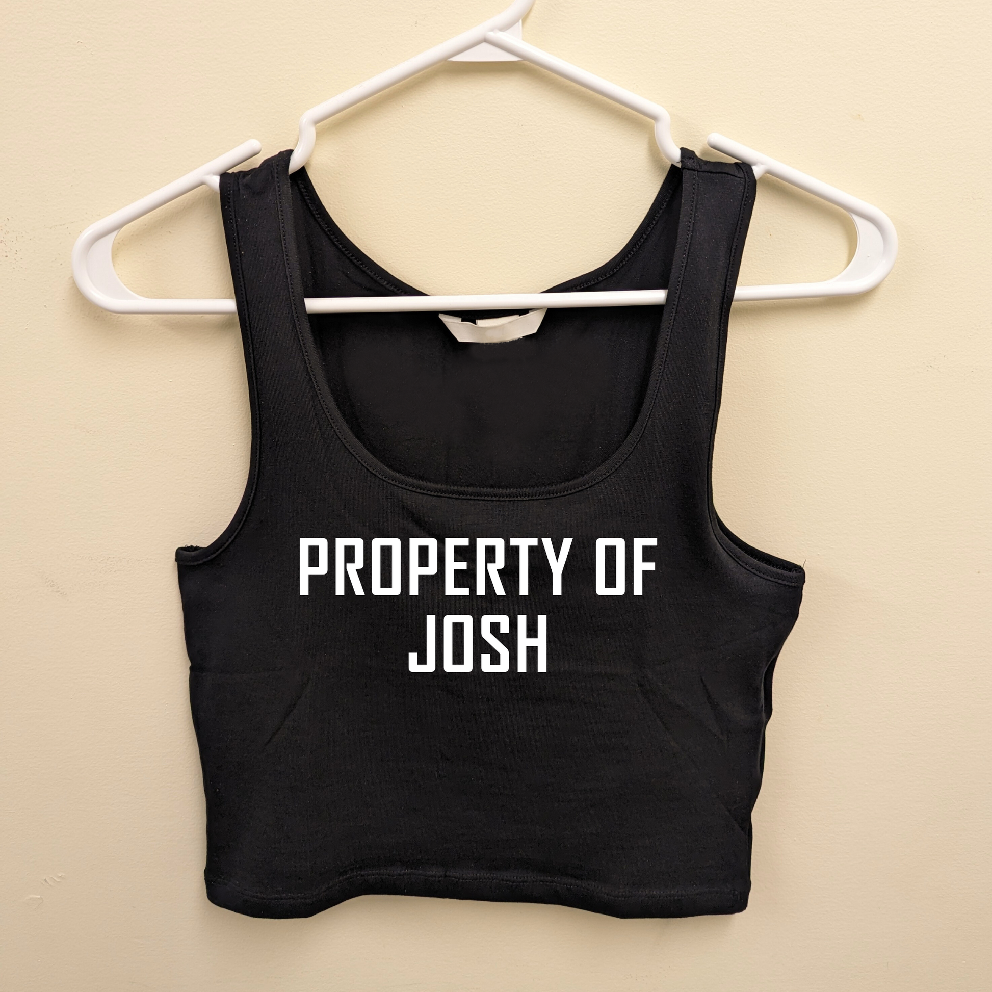 This adorable "Property of Name" cropped tank top is perfect for showing the world exactly who you belong to! It is custom made with the name of your choice! We can print any name, or any title such as Daddy, Sir, Master, and more. Choose from 9 different text colors.