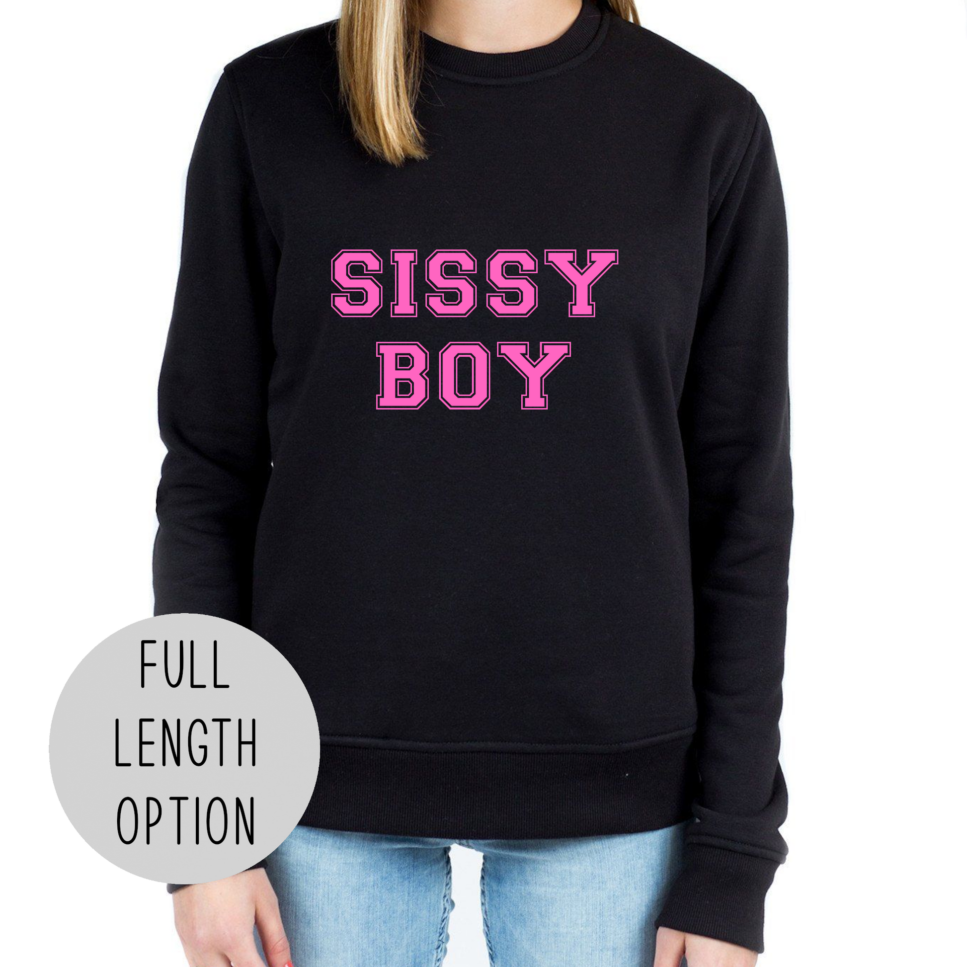This adorable sweater is perfect for all the subby femboys! It says "Sissy Boy" in an adorable varsity-style design. The design is available in 9 colors. You can choose from a sexy cut off cropped sweater or a regular full length comfy sweater!